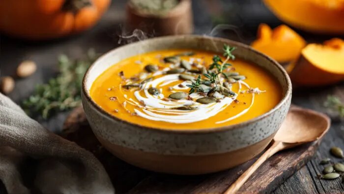 И напоследок — ресторанный хит, который легко повторить дома. Это самый ароматный и, пожалуй, интересный рецепт нашей подборки. Крем-суп из тыквы с сыром горгонзола — это идеальный баланс сладости запеченной тыквы и благородной пикантности голубого сыра. Осенью и зимой этот суп согревает лучше пледа, даря ощущение праздника и уюта одновременно.
