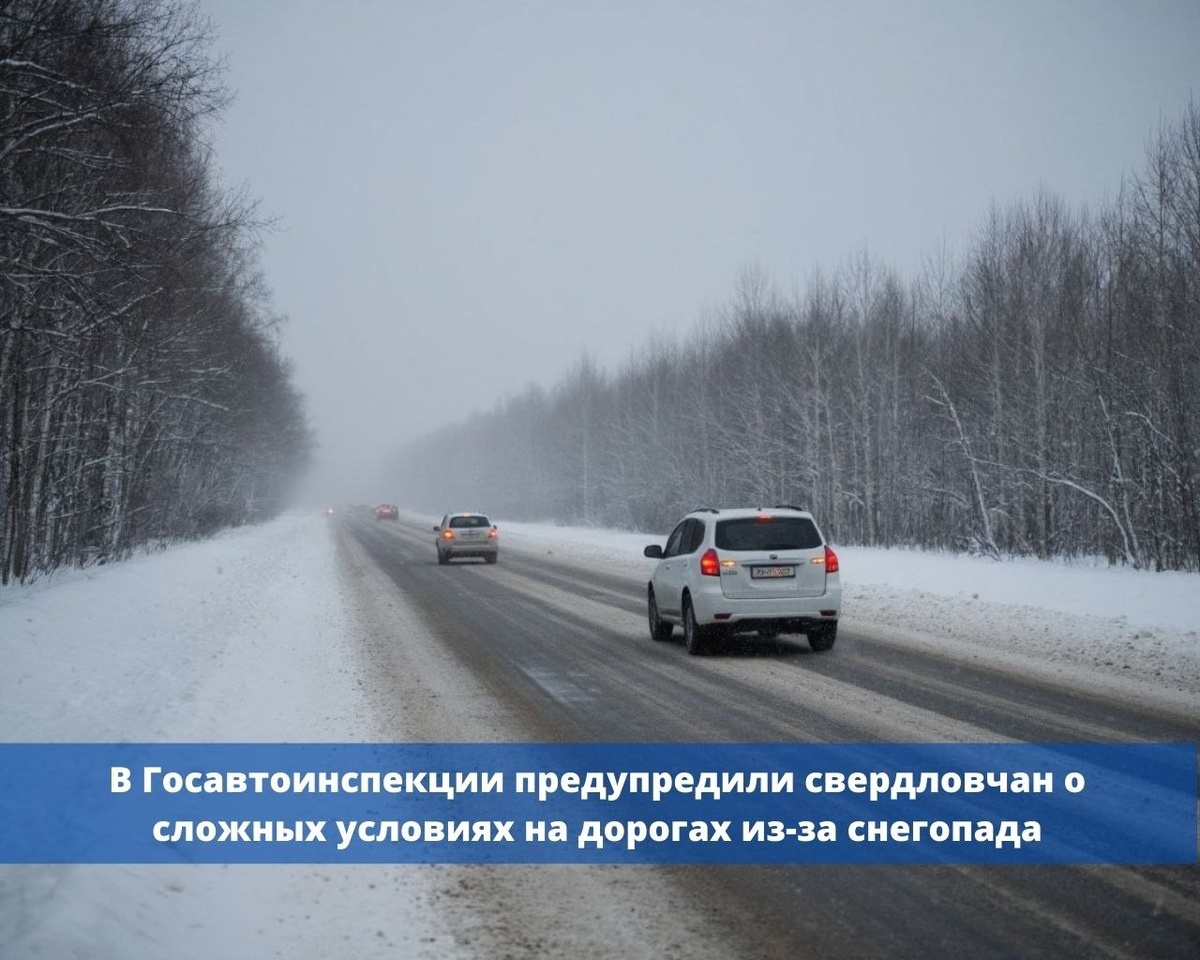 В Госавтоинспекции предупредили свердловчан о сложных условиях на дорогах из-за снегопада