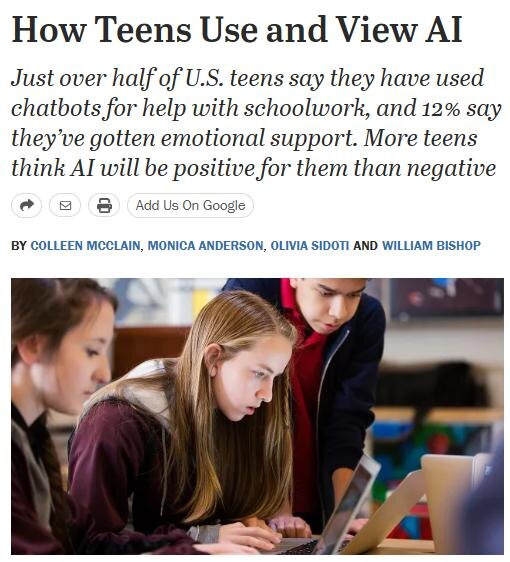 Большинство подростков в США (13–17 лет) уже используют AI-чатботов - ChatGPT, Copilot, Character AI