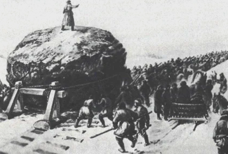В различных источниках это изображение подписывается как “Доставка глыбы из яшмы на Колыванскую фабрику