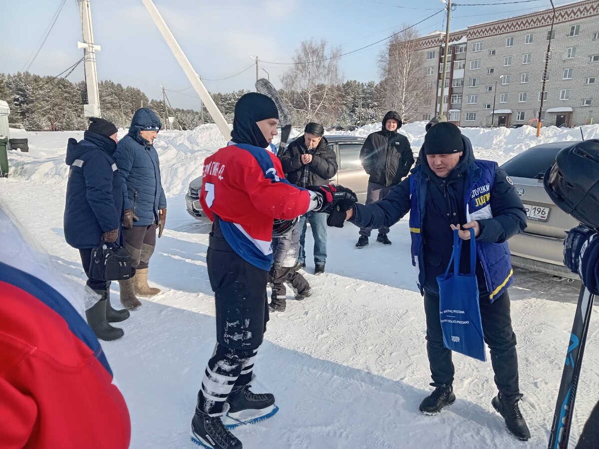 ⚡️Активисты местного отделения ЛДПР из Верхней Пышмы посетили хоккейный матч, на котором поздравили молодых спортсменов