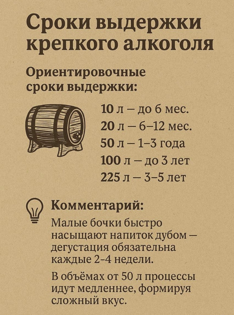 - дегустация обязательна: малые бочки — каждые 2–4 недели, большие — раз в 2–3 месяца;