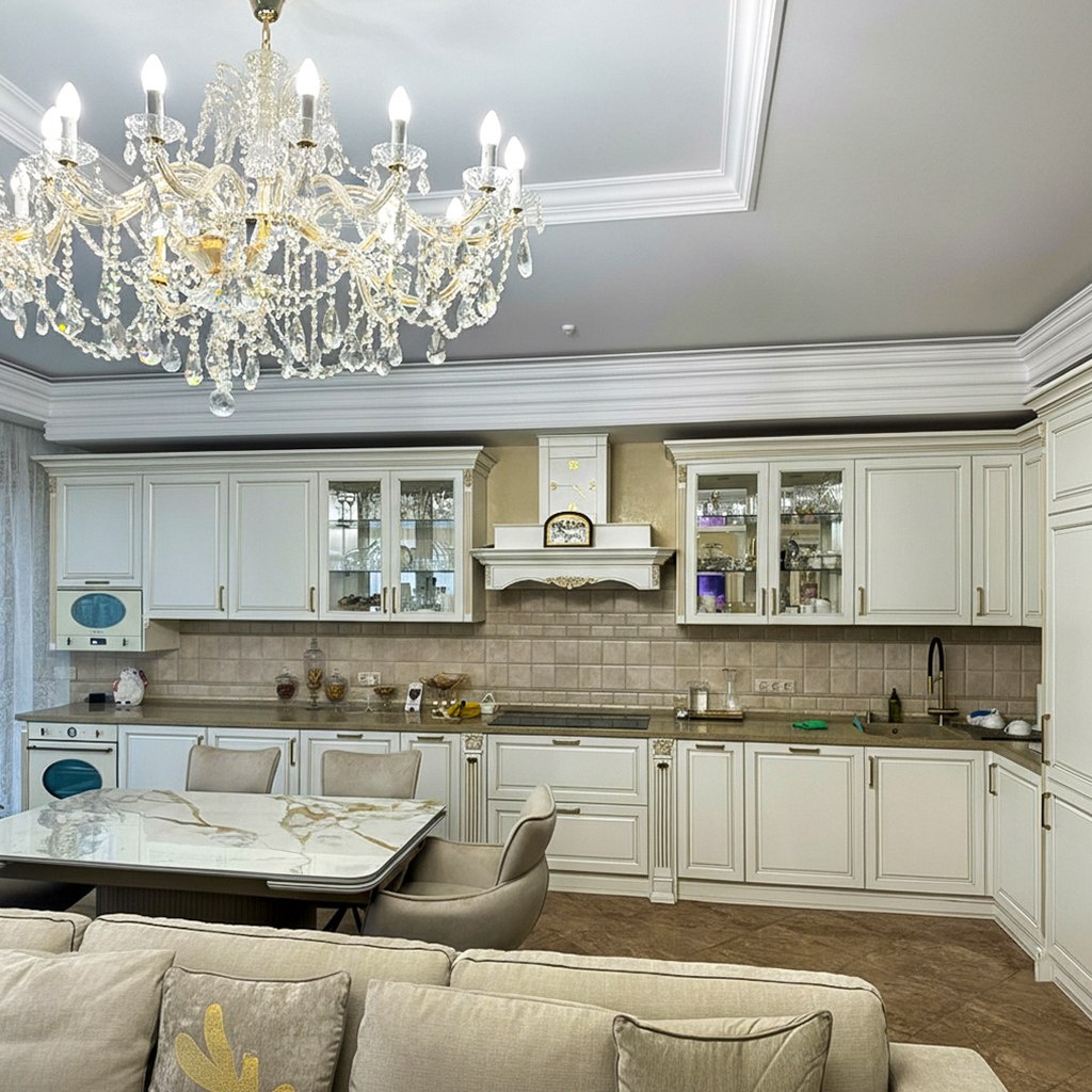 ✨ Детали нашей работы: ▪️ Фрезеровка: «Феона» ▪️ Покрытие: матовая эмаль ▪️ Декор: пилястры, козырёк вытяжки, карниз, цоколь Фрезеровка «Феона» с деликатной золотой патиной создаёт объёмный классический рисунок. Резные элементы, позолоченные пилястры и часы на вытяжке формируют парадную композицию, где каждый акцент поддерживает общую тему элегантной классики. Интересует кухня с насыщенным декором и золотой патиной? Изготовим фасады «Феона» с резными элементами под ваш проект! 📍г. Москва, ул. Кантемировская 65, 1 этаж, офис 1 📞 +79777990029 - Антон ✉️ baudexm5@gmail.com 📞 +79015533395 - Кирилл ✉️ baudexm3@gmail.com #проект #Феона #эмаль #патина #витрина