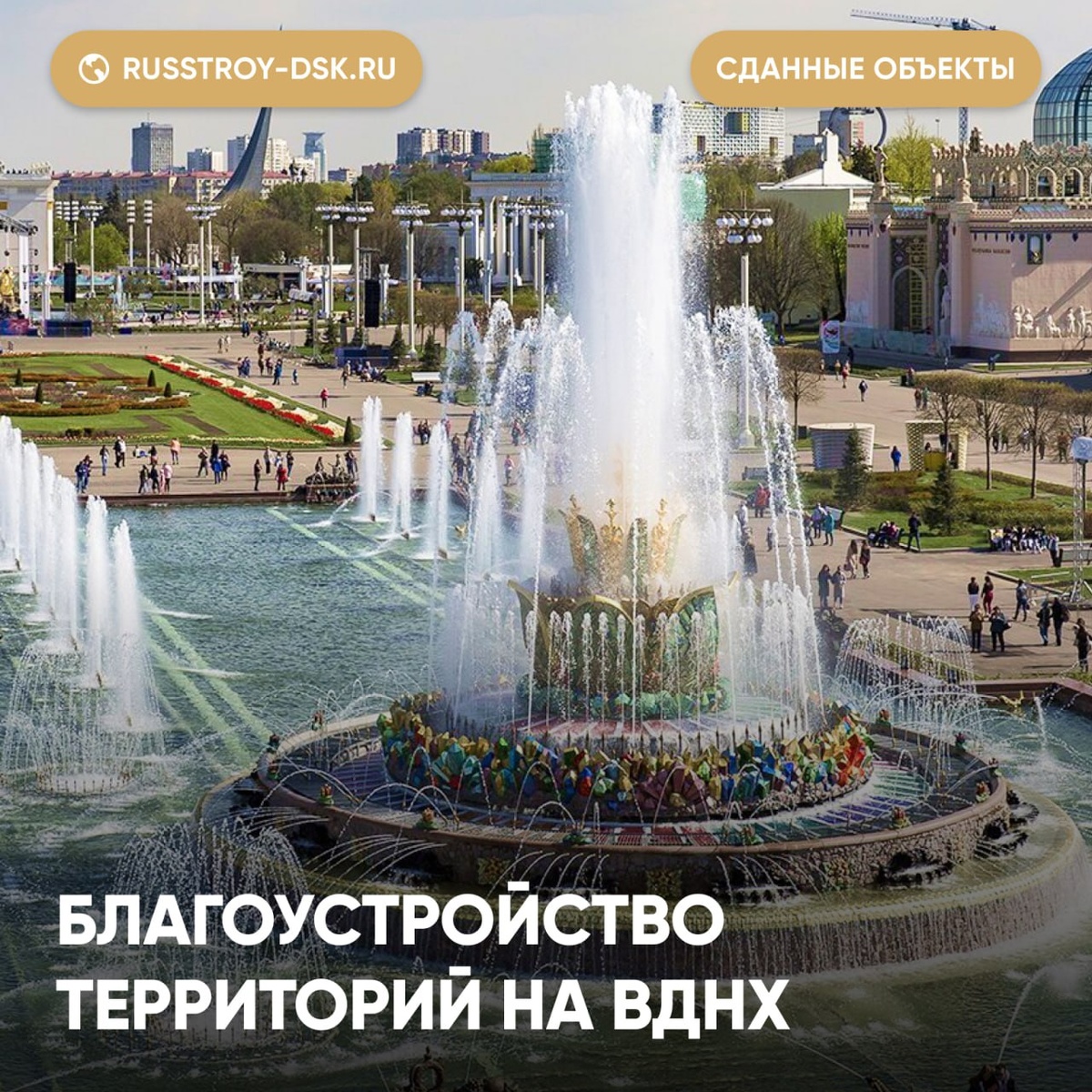 В рамках благоустройства территорий на ВДНХ компания «РУС-СТРОЙ» произвела реконструкцию дорожного покрытия и тротуаров. Было заменено 11 900 кв.м асфальта. Заказчик: ГКУ "Кольцевые магистрали"