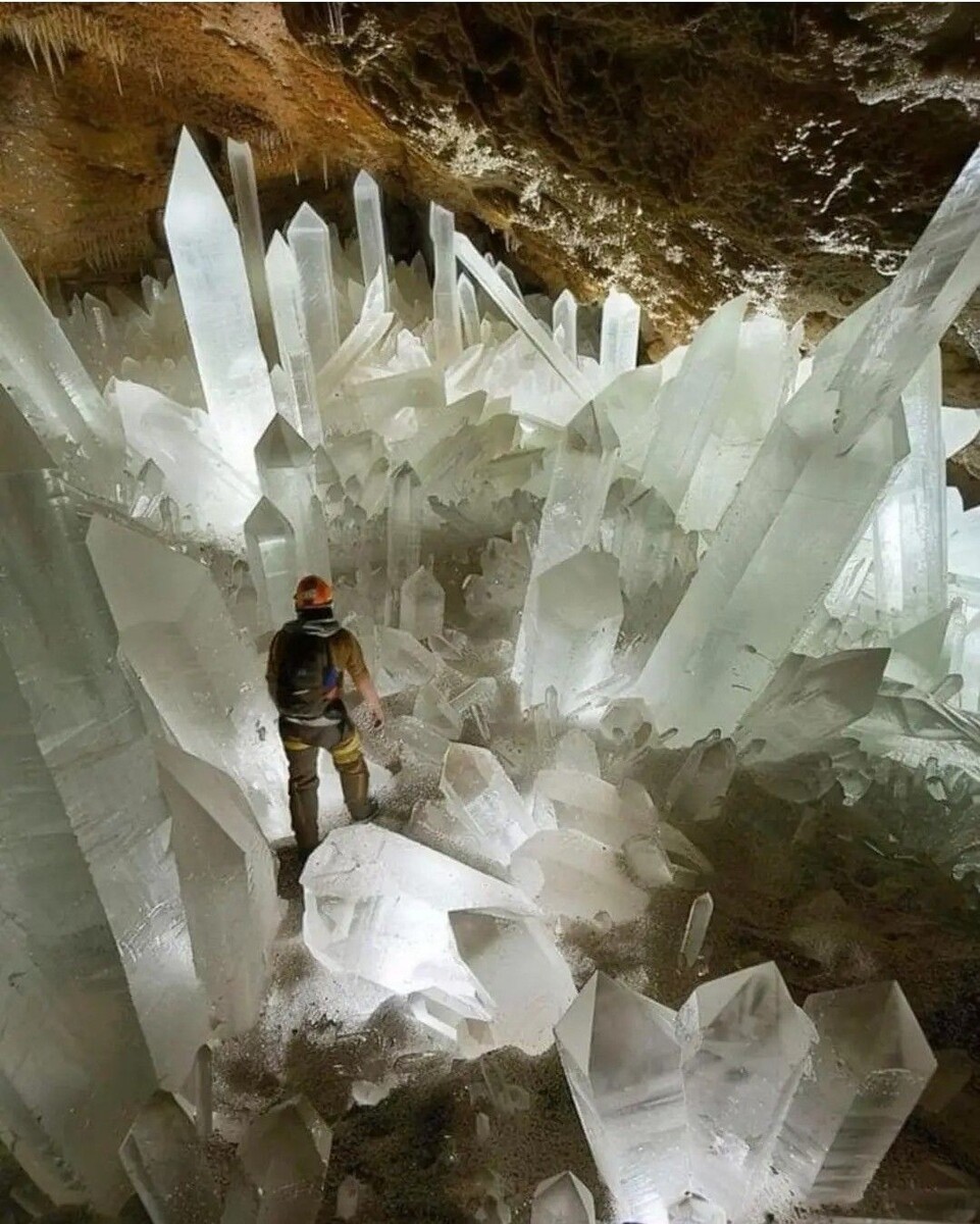 Пещеры с гигантскими кристаллами, обнаруженные в Мексике, описаны не раз, но мы с вами, драгоценные читатели, В общем (и целом 😺) приглашаю вас в путешествие, полное приключений, тайн, открытий и визуального восторга! Представьте себе место, где время застыло миллионы лет назад, приняв форму гигантских светящихся копий. Это не фантастический роман и не кадр из фильма про инопланетные миры. Это Пещера кристаллов (Cueva de los Cristales) в мексиканском штате Чиуауа — одно из самых невероятных и смертельно опасных мест на планете. Изучая материалы об этих пещерах, я обнаружила упоминания о подобных открытиях в труде по Минералогии от 1927 года, приведу краткий перевод: Характерной особенностью многих рудных месторождений Мексики, расположенных в меловых известняках страны, является наличие пещер в непосредственной близости от руды. Одна из таких пещер, обнаруженная в 1912 году во время горных работ на шахте Потоси в Санта-Эулалии, но ныне разрушенная, отличалась удивительной красотой