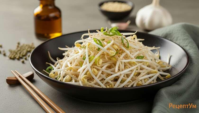 Остановилась на простом корейском варианте: бланшированные ростки, чеснок, зелёный лук и кунжутное масло. Пять ингредиентов, пятнадцать минут работы — и на тарелке блюдо, которое пахнет как в хорошем азиатском ресторане.