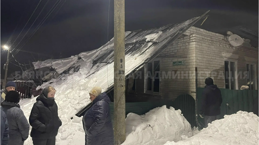 В брянском поселке Чайковичи под тяжестью снега обрушилась крыша жилого дома