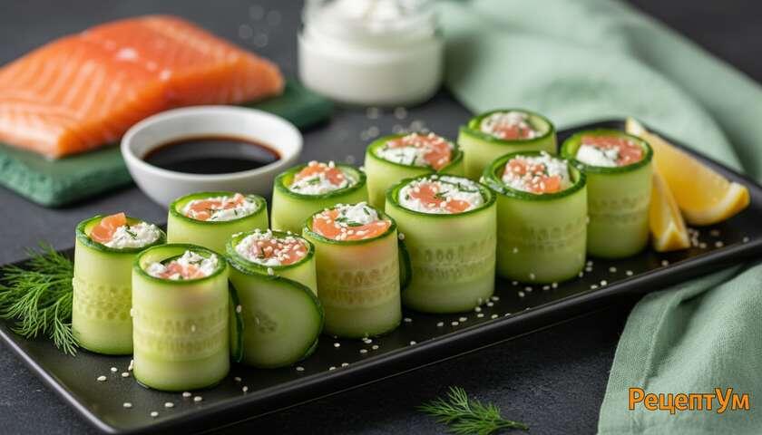 Готовим роллы из огурца с красной рыбой: эффектная закуска к 8 Марта за 20 минут