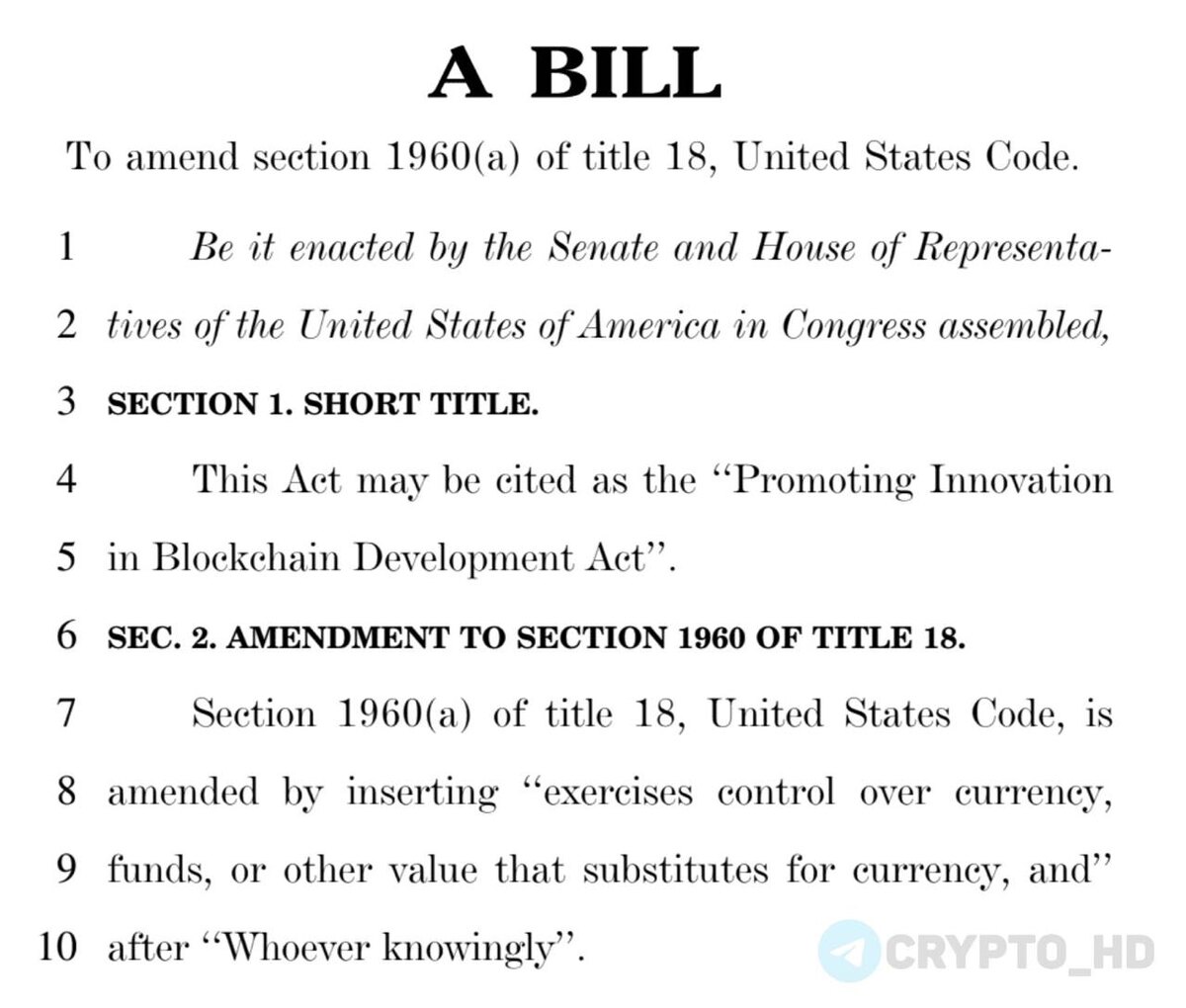 🇺🇸 В США представили двухпартийный законопроект о защите DeFi-разработчиков от уголовного преследования в соответствии с разделом 1960