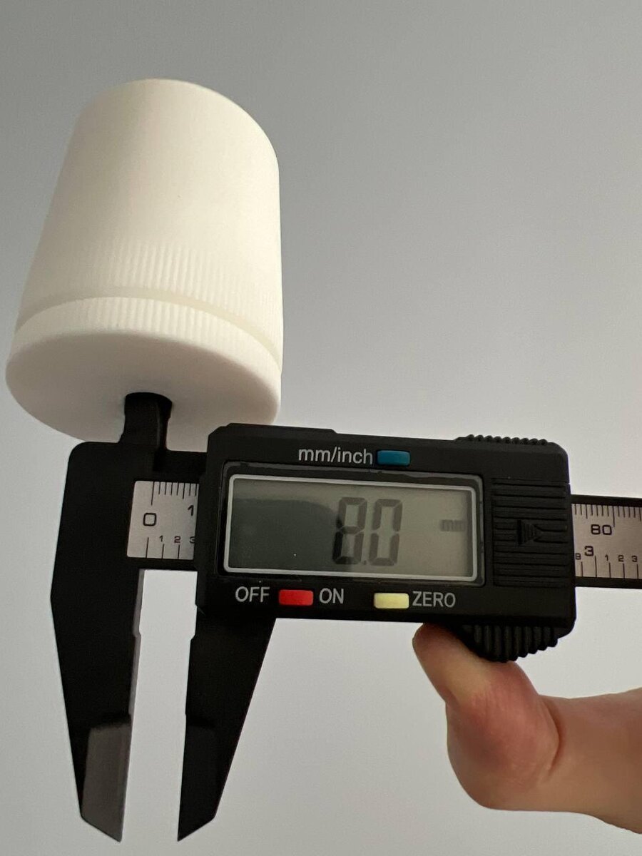 ? Часто при поиске лабораторных комплектующих или запчастей для оборудования мы слышим: «Мне нужен стандартный затвор». Но в химии и инженерии «стандарт» у каждого свой. Чтобы не играть в «угадайку» и не тратить время на возвраты, сохраняйте краткий гайд по правильным замерам на примере нашего фторопластового затвора: 1. Внутренний диаметр (проходное отверстие) Самый важный параметр, если через затвор должен проходить вал мешалки или трубка. Как мерим: Вставляем губки штангенциркуля для внутренних измерений в отверстие. На фото: Мы видим четкие 8.0 мм. Это значит, что вал на 8 мм войдет идеально (или с минимальным допуском в зависимости от задачи). 2. Внешний диаметр крышки (захват) Нужен, чтобы понимать, впишется ли затвор в габариты установки и будет ли удобно его закручивать. Как мерим: Зажимаем самую широкую часть корпуса (обычно это накатка для хвата пальцами). На фото: Получаем 45.9 мм. 3. Общая высота изделия Критично, если над горловиной колбы мало места или мешает д