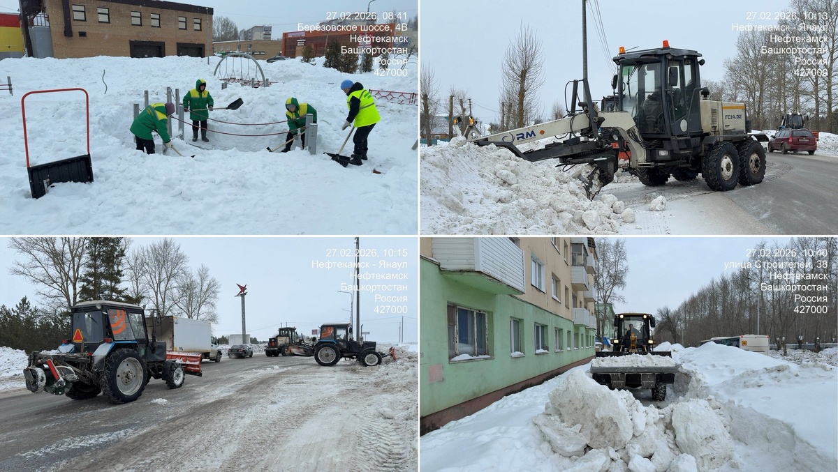 02.2026. Первая смена МБУ «Служба чистоты и порядка». 1 вывоз снега ул Юбилейная. Самосвалы 5 ед Погрузчик 3 т 2 мех очистка Индиго JCB 3 мех очистка тротуара Социалистическая. Погрузчик 4 мех очистка тротуара ул Парковая. Погрузчик 3 т 5 снятие наледи с тротуаров площадь Октября, Юбилейная, Авалон. МТЗ скалыватель 6 перекидка снежных валов НБШ, тротуар новое Ленина. МТЗ шнек 7 Уширение ул Янаульская. Грейдер МТЗ отвал 8 Уширение тротуаров аллей. МТЗ отвал 4 ед 9 подсыпка ПСС КДМ 2 ед 👉 Подписаться на канал
