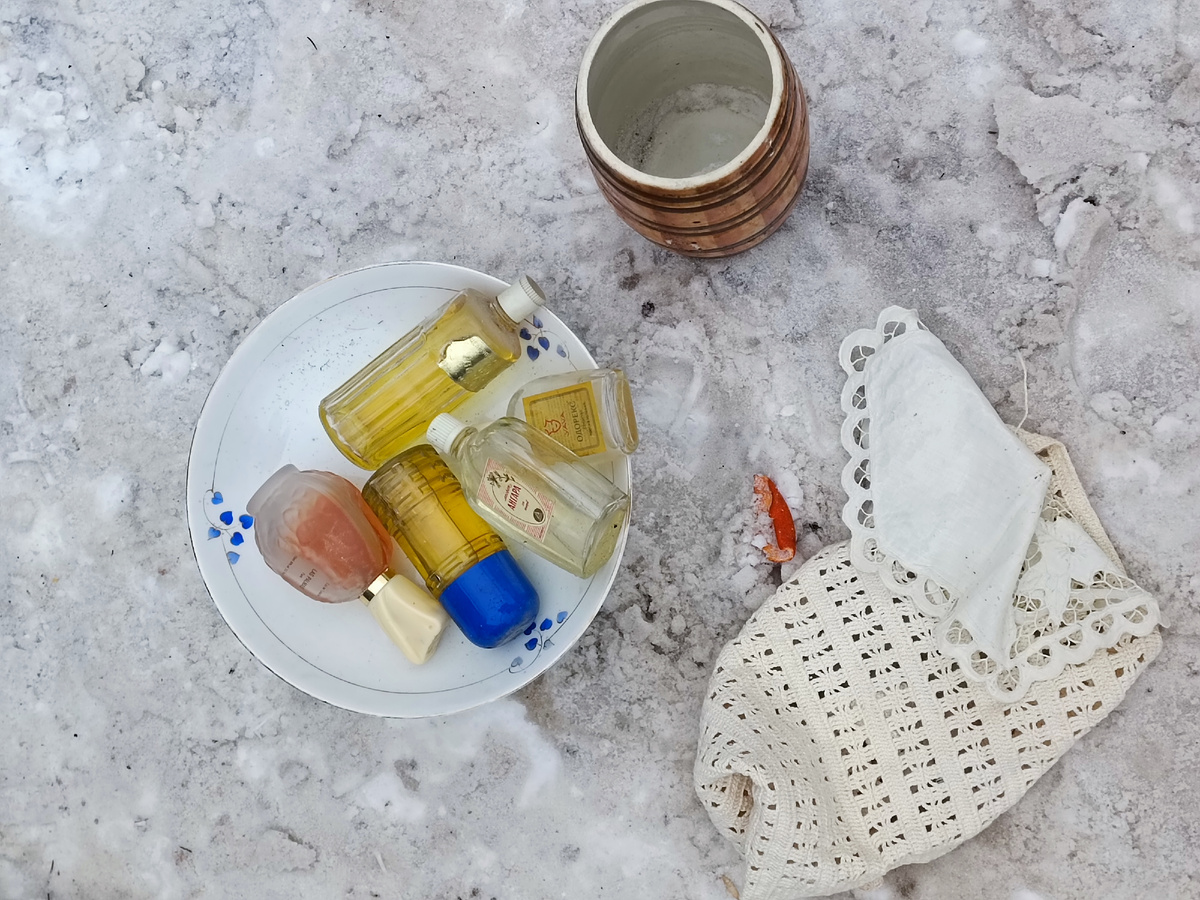 Там же обнаружила и советский парфюм, в том числе два забавных пузырька со средством от пота и лосьоном от комаров.