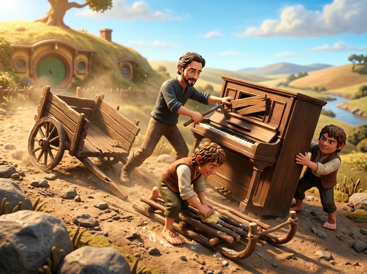 История о том, как доставка рояля из Хоббитона превратилась в гонку со временем по заброшенным трактам и бурным рекам. Трое друзей, включая широко известного в узких кругах пианиста Илью, рискуют всем, чтобы музыка прозвучала на веселой ярмарке вовремя.