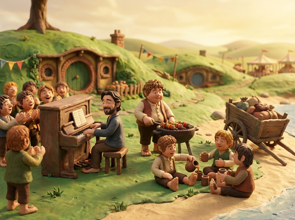 «Мелодия из Хоббитона» – сказка из печатной книги, созданная в качестве подарка другу на его День Рождения. Персонализированный сюжет строится на основе главного призвания молодого человека – игры на рояле, и происходит в его любимой вселенной из повести «Хоббит, или Туда и обратно» английского писателя Джона Р. Р. Толкина. В книге учтены черты характера именинника, а также любимое хобби (читайте до конца, чтобы узнать какое именно!). Текст дополнен иллюстрациями на основе его фотографий в прикольном пластилиновом стиле.
