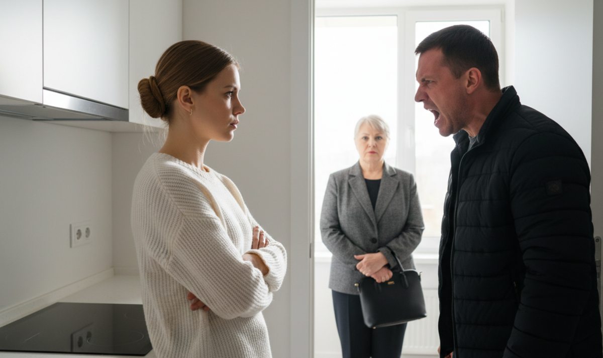 Дмитрий стоял в коридоре, даже куртку не снял — ворвался с улицы и сразу с порога. Голос громкий, лицо красное. Я стояла у плиты и помешивала кашу для Кирюши. Руки не дрогнули.