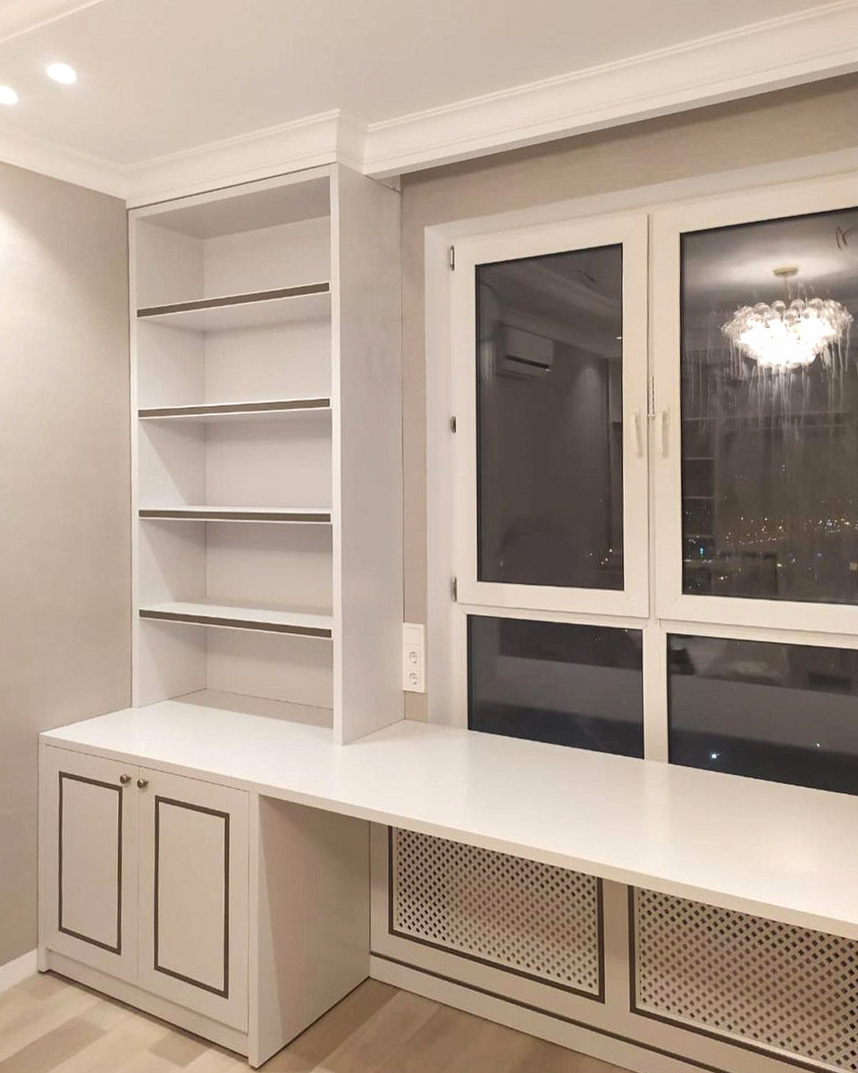 Детали нашей работы: ▪️ Конструкция: шкаф вокруг окна ▪️ Фрезеровка: «Техас» без вылетов ▪️ Покрытие: эмаль матовая ▪️ Декор: решетки для радиаторов ▪️ Особенность: двухцветное исполнение (светлые детали с тёмной фрезой) Фрезеровка «Техас» с контрастным двухцветным исполнением подчеркивает геометрию фасадов. Декоративные решетки радиаторов гармонично вписаны в общую композицию, сохраняя единство стиля. Нужны фасады с контрастной фрезеровкой? Реализуем под ваши задачи! 📍г. Москва, ул. Кантемировская 65, 1 этаж, офис 1 📞 +79777990029 - Антон ✉️ baudexm5@gmail.com 📞 +79015533395 - Кирилл ✉️ baudexm3@gmail.com #проект #Техас #эмаль #декоративнаярешетка
