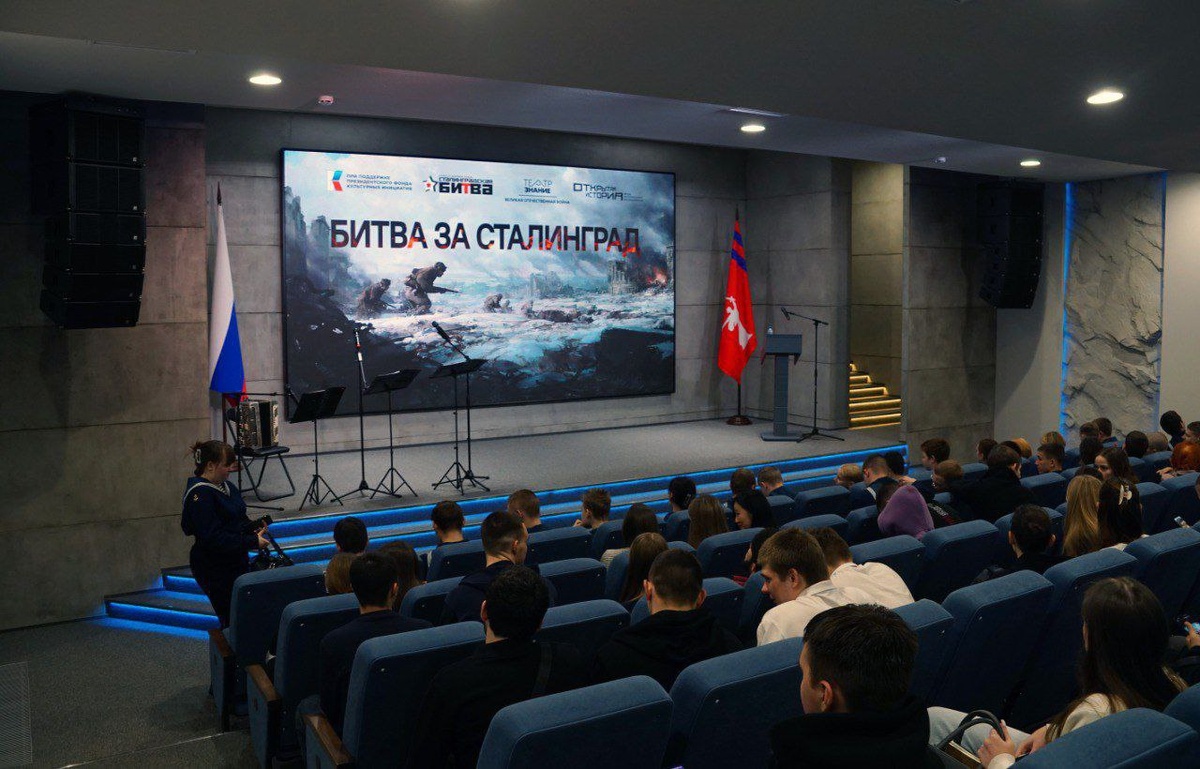 история" в рамках проекта "Театр-знание. Великая Отечественная война" представил театрализованную историческую лекцию, посвящённую Сталинградской битве. Для жителей города-героя Волгограда было проведено два показа "Битвы за Сталинград" Перед зрителями лекции-концерта шаг за шагом разворачивалась панорама грандиозного сражения. Жаркое лето 1942 года. Бодрые гитлеровцы шли по степи, шумели моторы, ехали танки. В реальности пройдет чуть больше полугода, а благодаря хронике из архива РГАКФД колоризованной компанией "Стармедиа", зритель в зале увидел и услышал, как обмороженные немцы хватались за шасси перегруженных "Юнкерсов", чтобы вырваться из ледяного ада в январе-феврале 1943 года. Но до этого еще далеко. Впереди была масштабная бомбардировка города, которая разрушила его почти до основания. Чудом сохранился фонтан "Детский хоровод", который успели снять 23 августа 1942 года. Зрители в зале смотрели на то, что осталось от города. Фонтан устоял, как чуть позже устоят защитники Ст