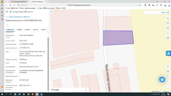 Название: земельный участок с кадастровым номером 23:05:0802015:349, категория земель – земли населенных пунктов, расположенного по адресу