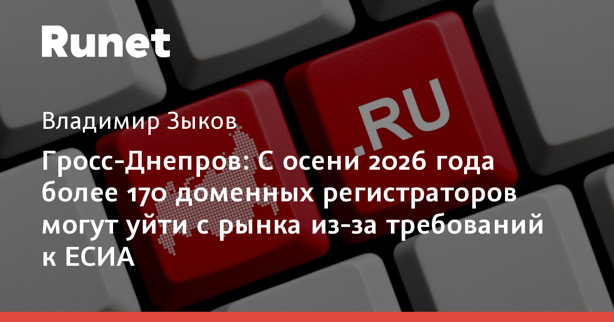 Гросс-Днепров: С осени 2026 года более 170 доменных регистраторов могут уйти с рынка из-за требований к ЕСИА
