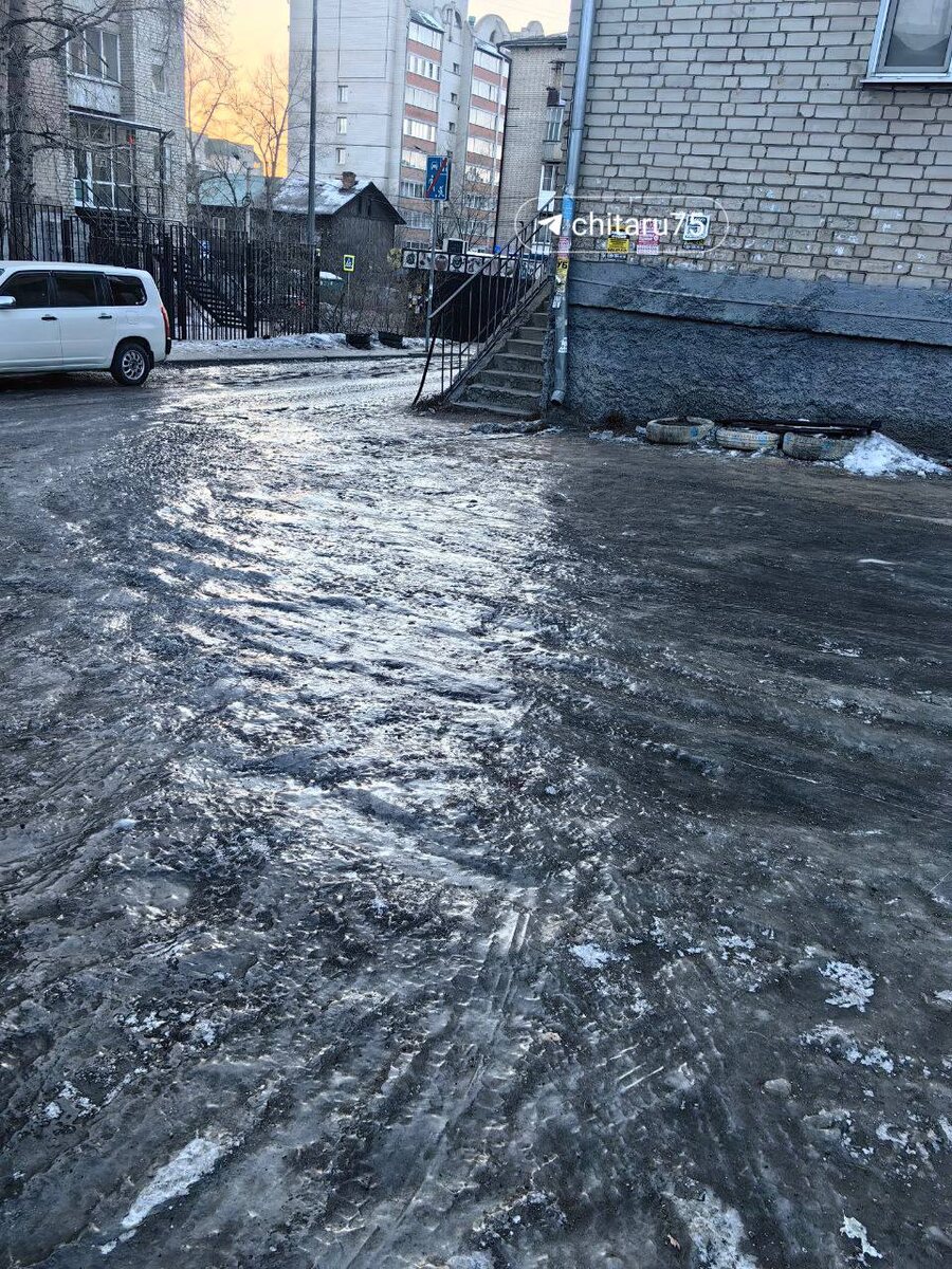 Читинцы жалуются, что дворы снова обледенели. На Журавлева, 54, по словам жителей, невозможно спокойно дойти до подъезда: