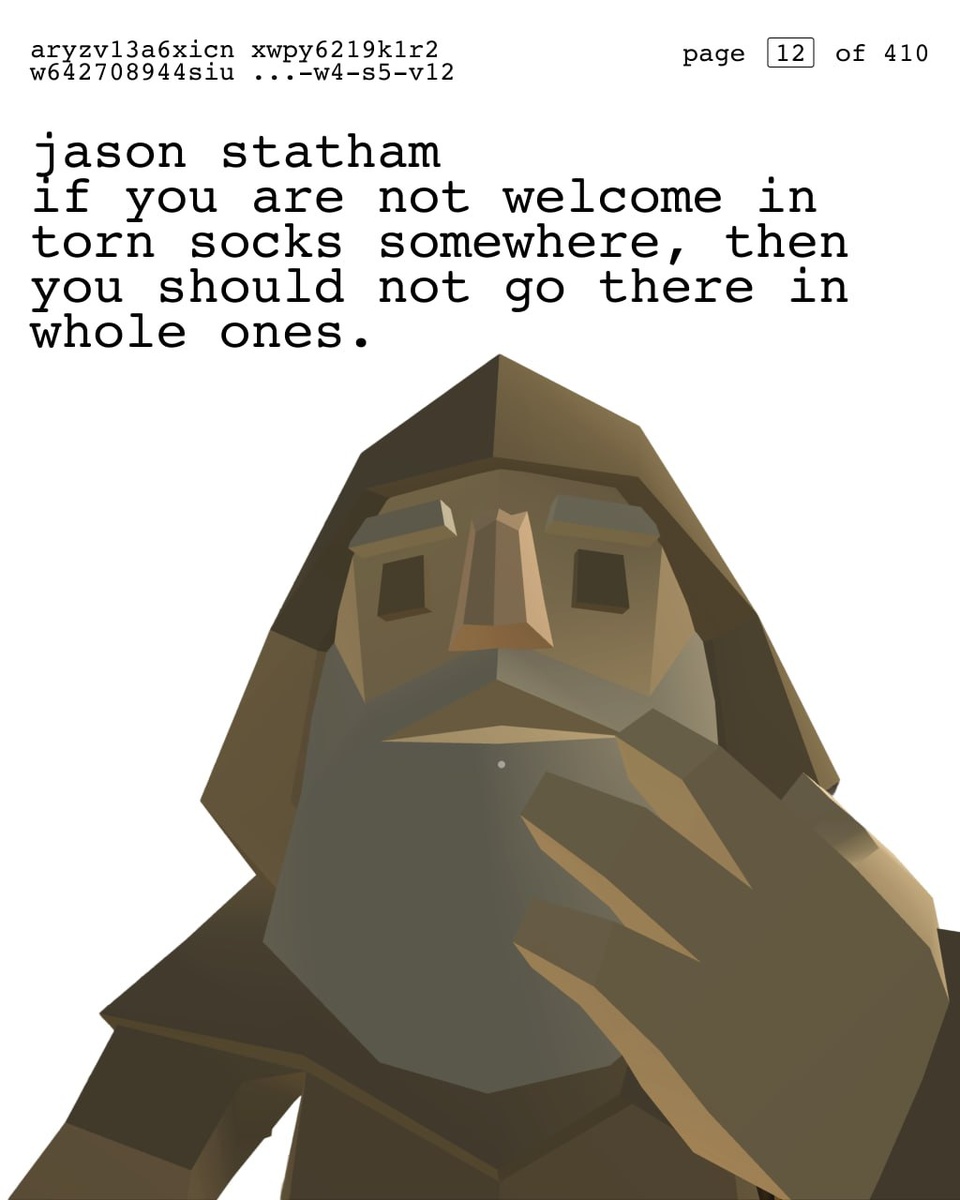 Представьте, бесконечная комната с полками, на которых стоят все возможные книги. Даже те, что ещё не написаны. Тут есть ваше будущее резюме и ТЗ на дизайн-проект, который вы возьмёте через год. Ваш твит от 2012 года где-то тут есть и он соседствует с ненаписанным романом Пелевина. Это не фантазия — это цифровая интерпретация концепта «Библиотеки Вавилона», выдвинутого писателем Хорхе Луисом Борхесом. Бесконечная библиотека, в которой есть все возможные комбинации букв, символов, слов и текста 📔 Она состоит из шестигранных комнат, в каждой из которых по двадцать полок с тридцатью двумя книгами по четыреста десять страниц, по сорок строк. В каждой строке содержится восемьдесят букв, допускающих двадцать пять орфографических символов: двадцать две буквы, точку, запятую и пробел. Можно посчитать, что в ней 24 × 1 312 000 = 31 488 000 книг, отличающихся всего одной буквой, и 991 493 388 288 000 книг, различающихся только двумя буквами Несмотря на то, что библиотека содержит всё, найт