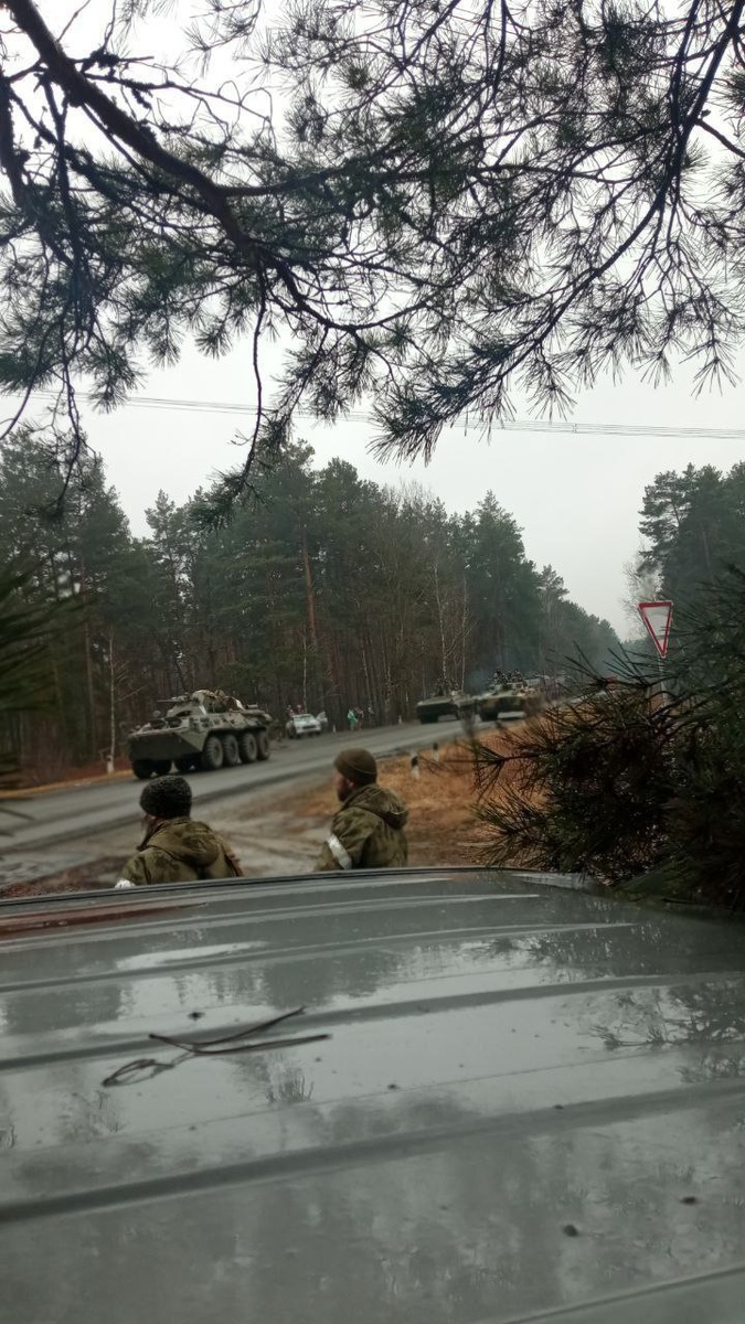 Сотрудники ЧВК «Редут» обеспечивают безопасность колонны ВДВ РФ, которая покидает Киевскую область.