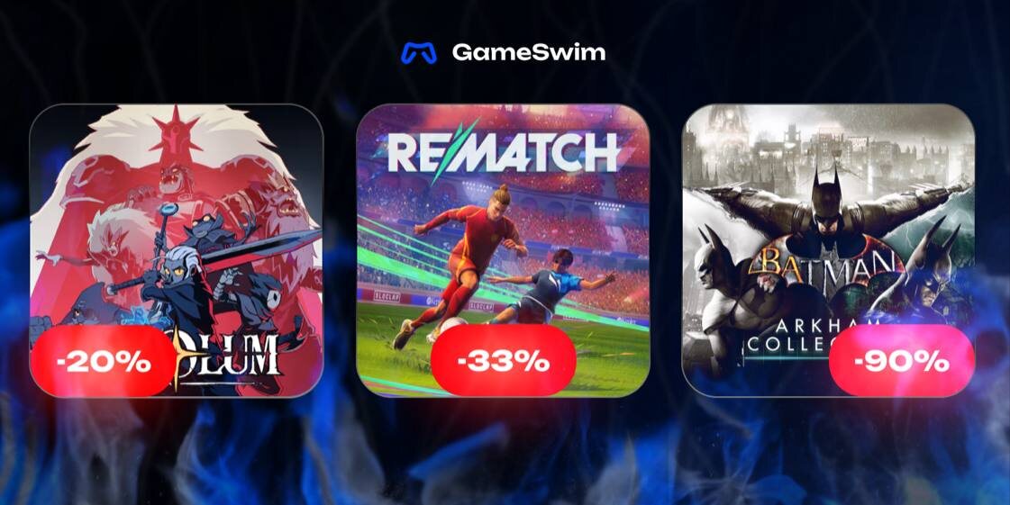 до 12.03.2026 ⚡️ Увлекательные приключения по отличным ценам! Absolum 1988₽ 1590₽ Инди-игра в постапокалиптическом мире с элементами экшена и приключений, акцентирующая внимание на атмосфере и сюжете. REMATCH 2299₽ 1540₽ Многопользовательский спортивный симулятор с динамичным геймплеем и возможностями кастомизации персонажей. Batman: Arkham Collection 10870₽ 1087₽ Сборник игр серии Arkham, включающий "Arkham Asylum", "Arkham City" и "Arkham Knight", известных своим глубоким сюжетом и увлекательным геймплеем за Бэтмена. Купить игру 👉 gameswim.ru