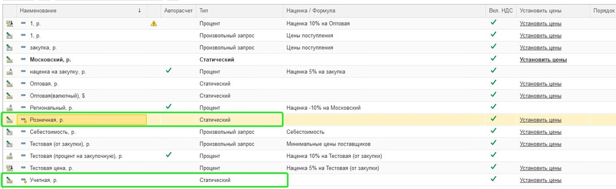 1. Виды цен 📍 Продажи - Цены и скидки - Виды цен Типы цен: · Статический - фиксированная цена · Динамический (процент) - процент от базовой цены · Динамический (формула) - расчёт по формуле Настройки: ✔ Авторасчет - цены обновляются автоматически при изменении базовых ✔ Формат цены - округление через конструктор форматной строки 2. Установка цен Способы: 1️⃣ В карточке номенклатуры · Ссылка «+ новая цена» - заполните период, вид цены, характеристику 2️⃣ Документ «Установка цен» (массово) 📍 Продажи - Цены и скидки - Установка цен · Выберите виды цен · Заполните товары (из накладных, по группам, из файла) · Примените действия: изменить на %/сумму, округлить, по формуле · Распечатайте ценники кнопкой «Печать» 3️⃣ На основании приходной накладной · Документ - «Создать на основании» - «Установка цен» Подробнее в нашей инструкции: https://clck.ru/3S5yTR