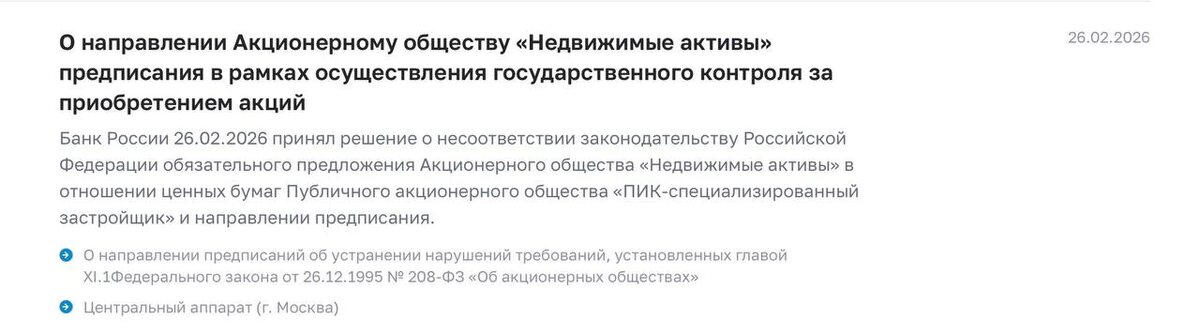 Всё-таки у ЦБ возникли комментарии к оферте по PIKK. Так что цену мы сегодня не узнаем.