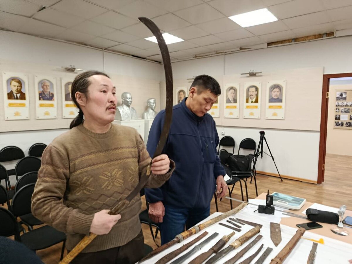 Өбүгэлэрбит кистэлэҥнэрин сыныйан билээри уустар муһуннулар Иһитиннэрбиппит курдук, Покровскайга Аҕа дойдуну көмүскээччилэр күннэринэн Хаҥаластааҕы Г.В. Ксенофонтов аатынан кыраайы үөрэтэр түмэлгэ “Батас. Батыйа. Быһах: защита и честь якутского народа” диэн кэрэхсэбиллээх сонун быыстапка арыллыбыта. Биир бастакынан бу быыстапканы көрө, билсэ уустар, ону сэргэ олохтоох түмэллэртэн кэллилэр, ол иһигэр Дьокуускайтан маастар Хаҥыл Уус-Александр Данилов, саха былыргы билээҕин эдэр чинчийээччилэрэ Алексей Климовскай, Владимир Калачев о.д.а. Сиhилии: https://ханаласгазета.рф/70775-2/ Людмила Аммосова. Ааптар хаартыскаҕа түһэриилэрэ. @Новости газеты «Хангалас»