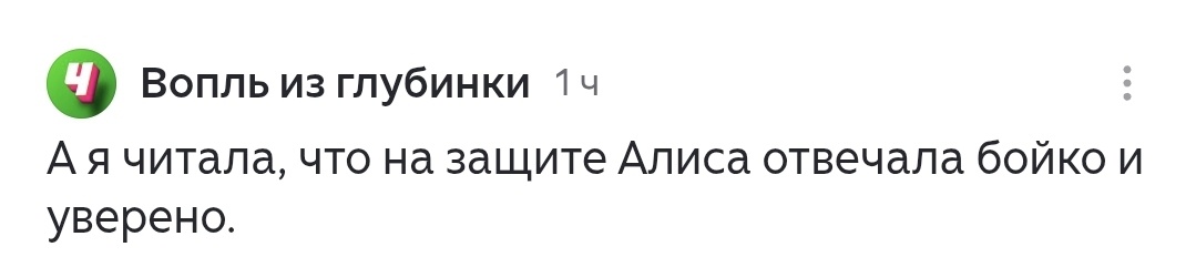 Причём этот комментарий под авторской статьёй, в которой о качестве ответа ни слова.