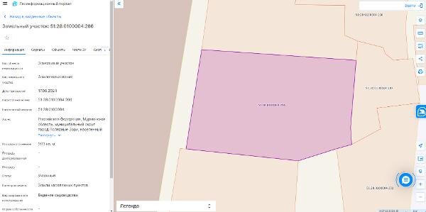 Название: Земельный участок с кадастровым номером 51:28:0100004:266, площадью 993 кв.м., категория земель – земли населенных пунктов