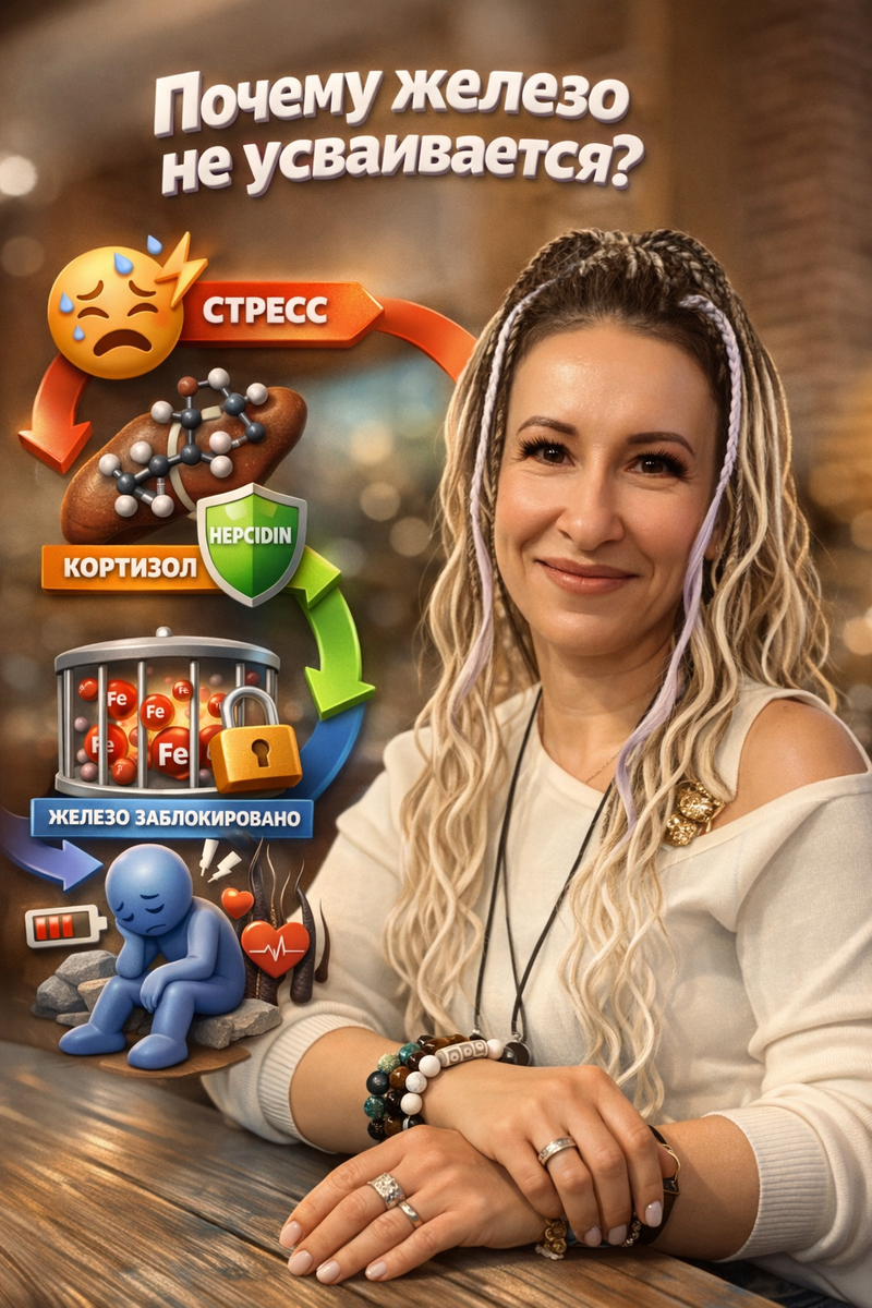 Снова активируется стресс-ось. Снова повышается кортизол. Снова растёт гепсидин. И круг замыкается.