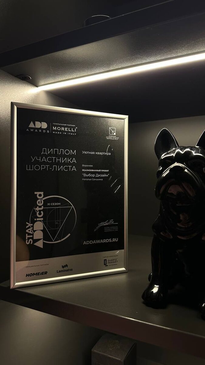 наших клиентов. Каждый проект для нас - это история про стиль, функциональность и характер пространства. И такие награды подтверждают, что мы движемся в правильном направлении. Спасибо всем, кто выбирает нашу студию дизайна интерьера и вдохновляет нас становиться лучше ♥️ Впереди - ещё больше красивых и продуманных пространств!🫶