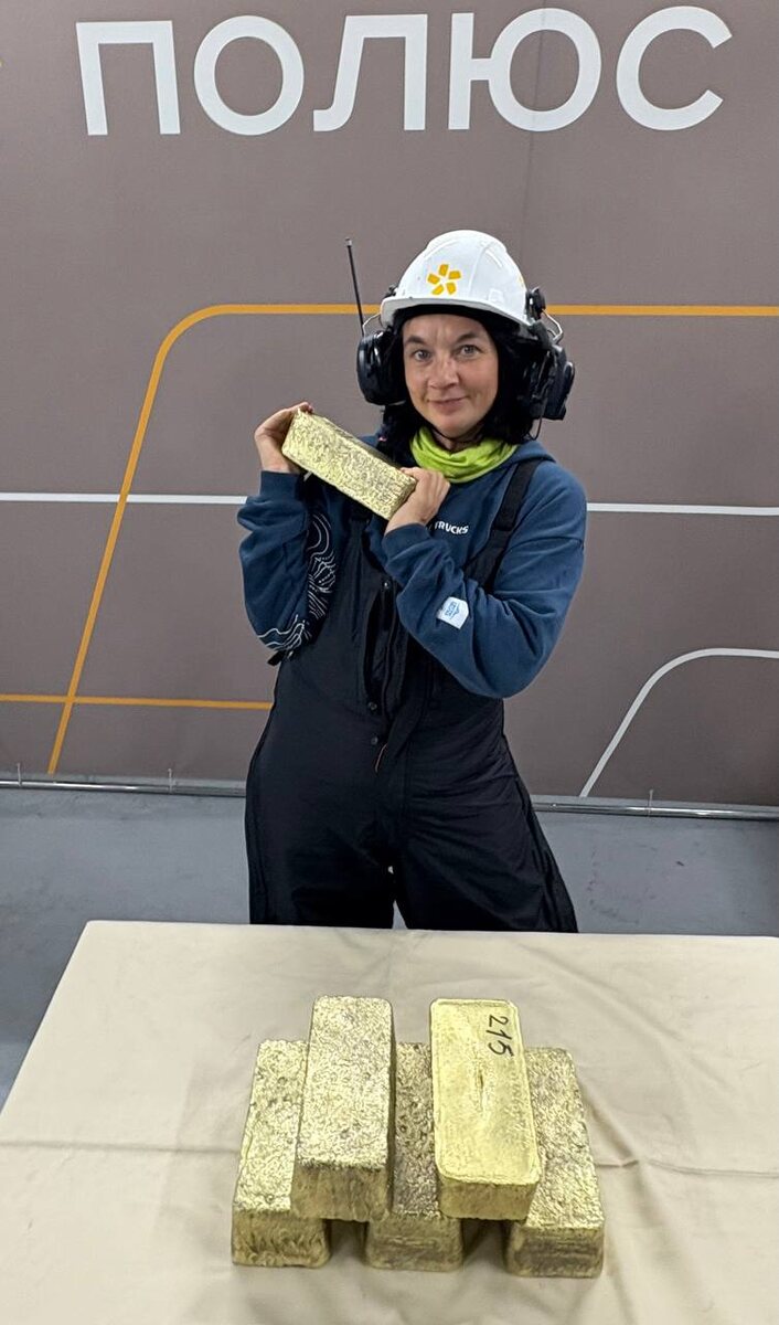 И наконец – золотые слитки в почти чистом виде. Из цехов мы прошли ещё через несколько постов безопасности (здесь всё очень строго) и наконец попали в самое главное помещение. Впрочем, работающие на данном предприятии наверняка захотят меня поправить, мол, есть места и поважнее. Однако, нам про них неведомо. Да и, сами понимаете, что может быть интереснее того места, где золото превращается в слитки. Нас специально подождали, чтобы мы своими глазами увидели данный процесс. Так-то здесь не то чтобы каждую минуту слитки выплавляли, всё гораздо скромнее. Раз – и расплавленное золото потекло в форму. Вот такой пирожочек получился. Чтобы его извлечь, надо подождать минут 10-15. Мы ждать не стали, потому что в соседней комнате нас уже ждали ранее извлечённые слитки. Это не чистое золото, поэтому такой цвет. Слиток на 70% состоит из золота, на 20% из серебра и ещё на 10 из всякого сопутствующего. Желающие могут угадать, сколько весит такой золотой пирожок. Не желающие могут не уга