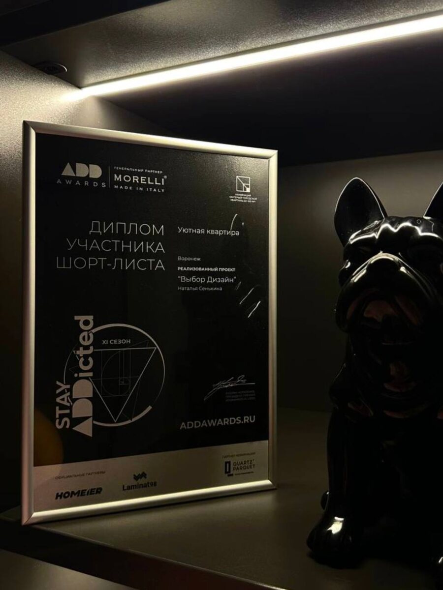 наших клиентов. Каждый проект для нас - это история про стиль, функциональность и характер пространства. И такие награды подтверждают, что мы движемся в правильном направлении. Спасибо всем, кто выбирает нашу студию дизайна интерьера и вдохновляет нас становиться лучше ♥️ Впереди - ещё больше красивых и продуманных пространств!🫶