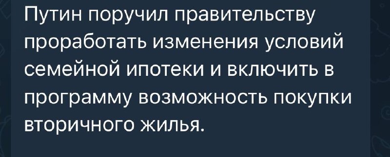 Некоторые каналы с лоботомией написали «Путин поручил распространить семейную ипотеку на вторичку», либо просто хайпа ради