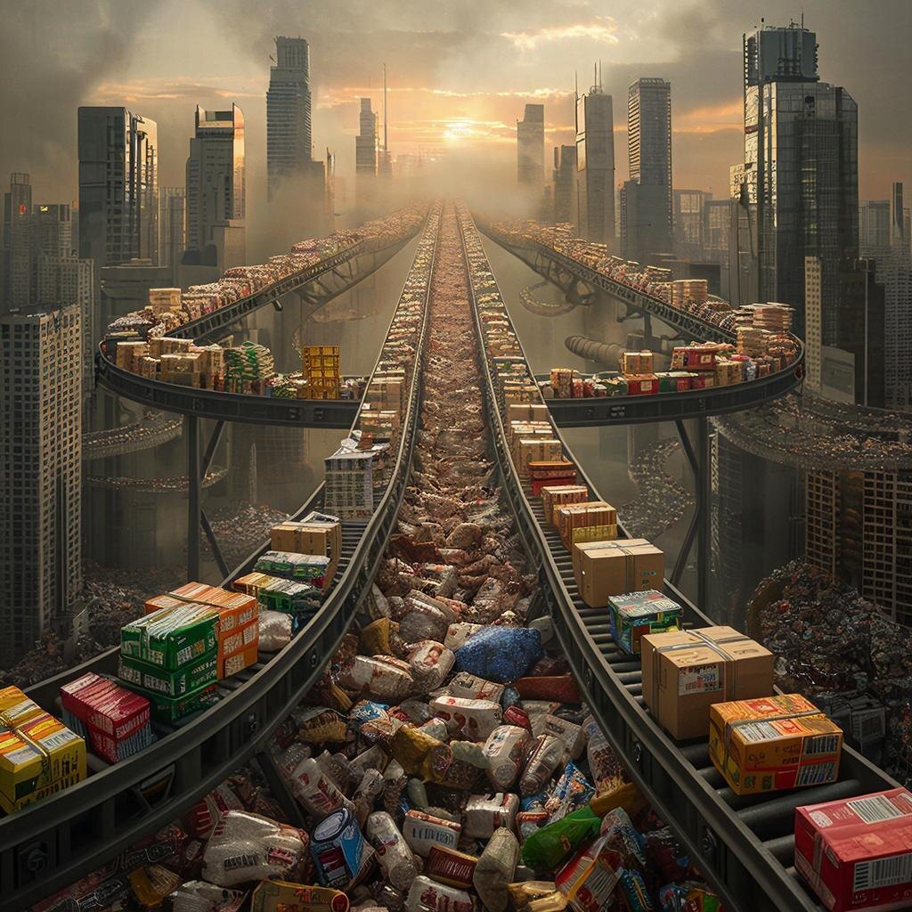 Однако текущая траектория, как показывают данные, ведет в противоположную сторону. Объем мировой торговли растет быстрее ВВП. Упаковка становится все более сложной и менее перерабатываемой. Логистические цепочки удлиняются, а не укорачиваются. Аппарат Гольджи цивилизации работает на пределе мощности, сортируя и упаковывая потоки, которые все больше напоминают циркуляцию впустую. Цитоплазма планеты задыхается от накопленной упаковки, транспортные артерии перегружены, а лизосомы — системы переработки — атрофированы за ненадобностью в рамках линейной экономики.