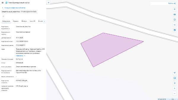 Название: Право заключения договора аренды земельного участка из земель населенных пунктов с кадастровым номером 71:09:020111:585, площадь