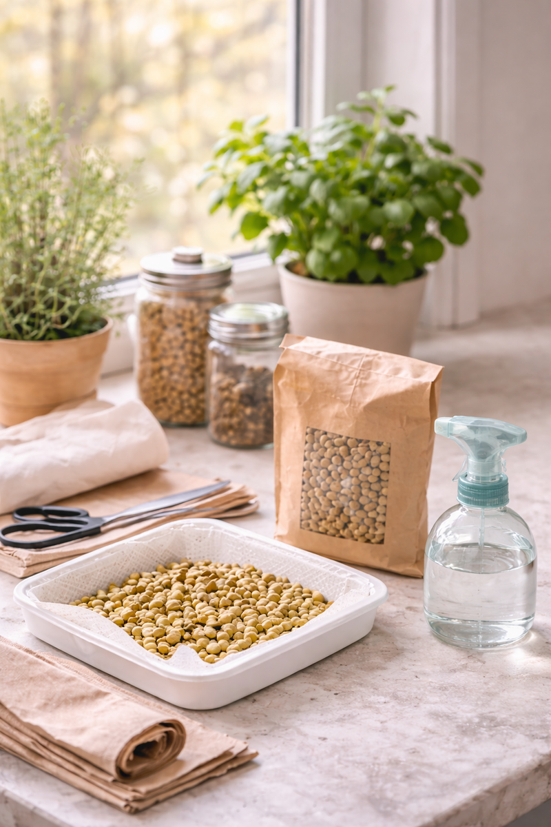 Я перестала покупать дорогую микрозелень в маленьких коробках. Решила проверить, смогу ли вырастить её сама — быстро и без земли. Начала с обычного гороха. Теперь на моём подоконнике всегда есть свежая зелень. Он стоит недорого.