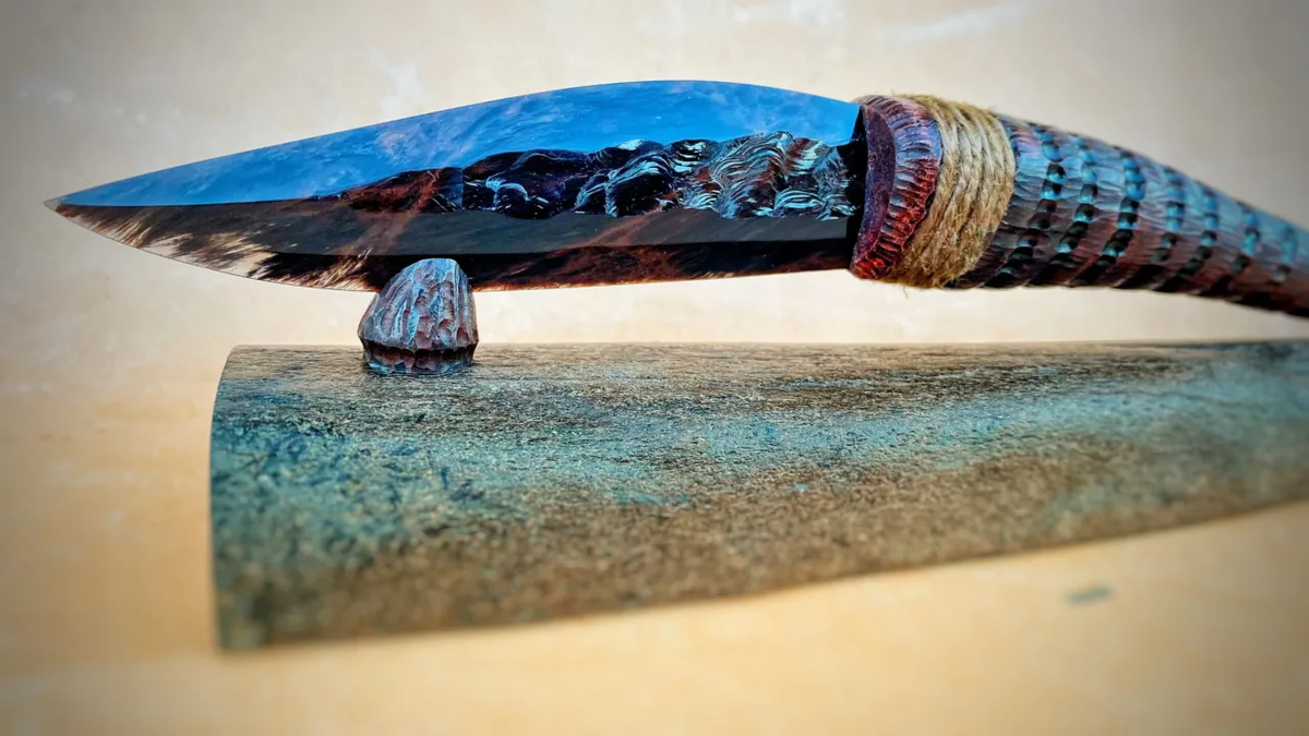 Древние мастера делали из обсидиана наконечники, ножи и лезвия, которые пугали противника и спасали жизнь в быту. А сегодня обсидиан иногда используют даже в хирургии, потому что лезвие из него получается очень острым. Обсидиан это вулканическое стекло. Когда лава остывает очень быстро, кристаллы не успевают вырасти. Получается не камень с крупными зёрнами, а почти однородная стеклянная масса. У металла и у большинства камней структура зернистая. Под микроскопом край любого стального ножа похож на очень мелкую пилу: там микрозубцы, неровности, заусенцы. У обсидиана структура другая, поэтому при правильном сколе край получается очень гладким. Он режет не зубчиками, а ровной кромкой. Чаще обсидиан чёрный или тёмно-коричневый из-за примесей. Бывают и другие оттенки, вплоть до зелёного и радужного блеска. Но для ножа важен не цвет, а однородность: чем меньше пузырьков и трещин, тем лучше получится лезвие. Обсидиан раскалывается ровным сколом. Это значит, что при ударе отходит тонкая ров