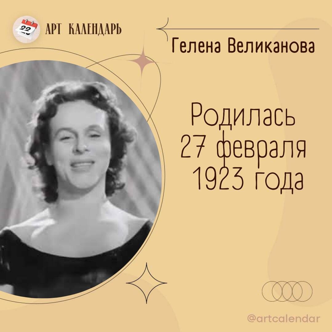 27 февраля 1922 родилась Гелена Марцелиевна Великанова, советская и российская эстрадная певица