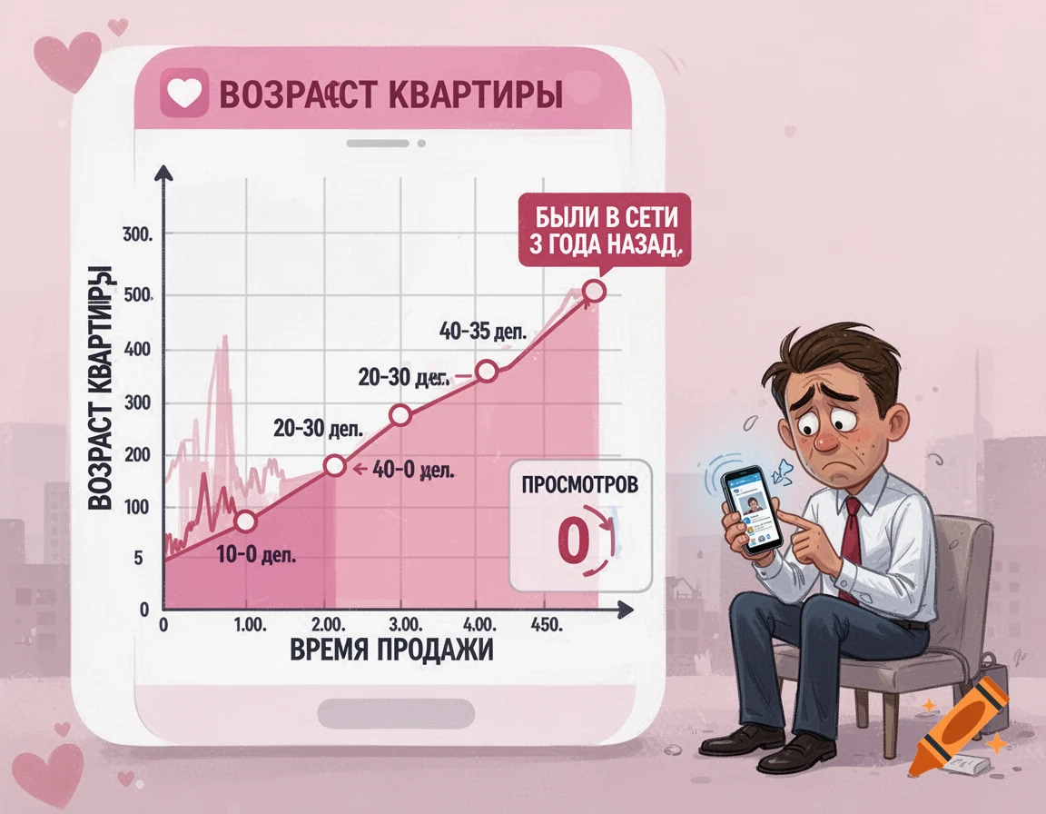 Рынок замер в странном состоянии: продавцы не хотят снижать цены, покупатели не могут платить такие проценты, а квартиры висят в базе месяцами, как анкеты на сайтах знакомств. Последний раз лайкнули год назад, а в личку так и не написали.