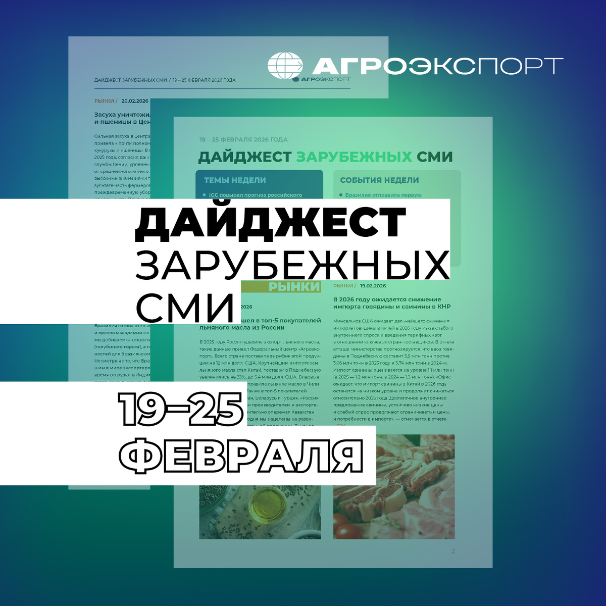 Дайджест зарубежных СМИ от «Агроэкспорта» (19 – 25 февраля 2026 года)
