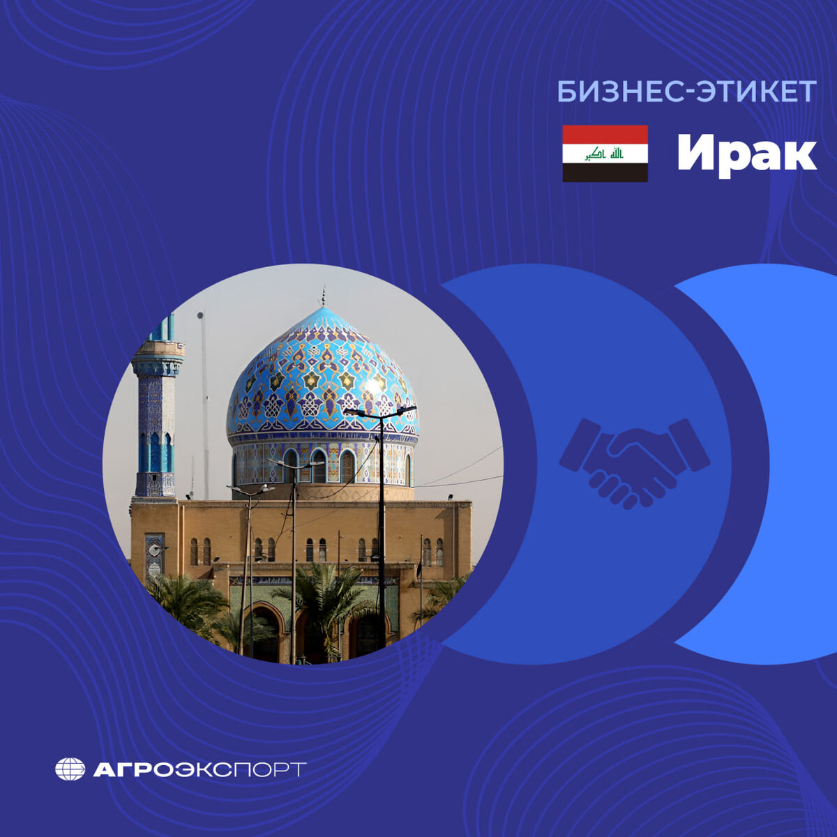 Ирак — мусульманская страна с богатой историей и консервативными общественными нормами. Религия играет ключевую роль в формировании обычаев и делового этикета. Это сложный, но перспективный рынок, где успех во многом зависит от личных отношений и доверия. Разберемся, что важно учитывать экспортеру. 🗣 Государственным языком является арабский, при этом жители разговаривают на его иракском диалекте. ⌛️Встречи рекомендуется назначать не ранее чем за две недели и подтверждать заранее. Отношение ко времени более свободное: возможны опоздания, однако иностранным партнерам лучше приходить вовремя. 🤝 Приветствие на арабском («Ас-саляму алейкум» — «Уа-алейкум ас-салям») произведет хорошее впечатление в начале диалога. Мужчины обычно приветствуют друг друга рукопожатием в сочетании со зрительным контактом и улыбкой. Иракские мужчины, как правило, пожимают руки некрепко, но продолжительно, пока обмениваются словесными приветствиями. Такая традиция может быть непривычной, но не следует убирать р