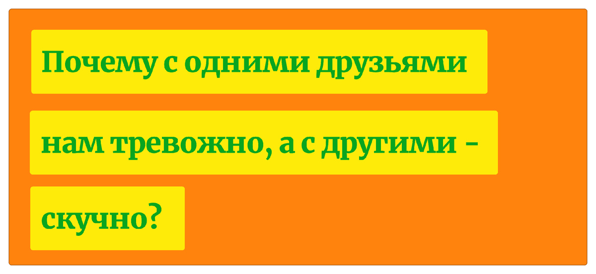 Вы замечали, что с одними друзьями вы чувствуете себя как на иголках? Ждёте ответа на сообщение, переживаете, не обидели ли чем, анализируете каждое слово. А с другими — всё предсказуемо, спокойно, но... как-то пресно. Встречи раз в полгода, разговоры ни о чем, никаких эмоций. И вы думаете: «Почему с одними людьми меня "колбасит", а с другими — зевота?».