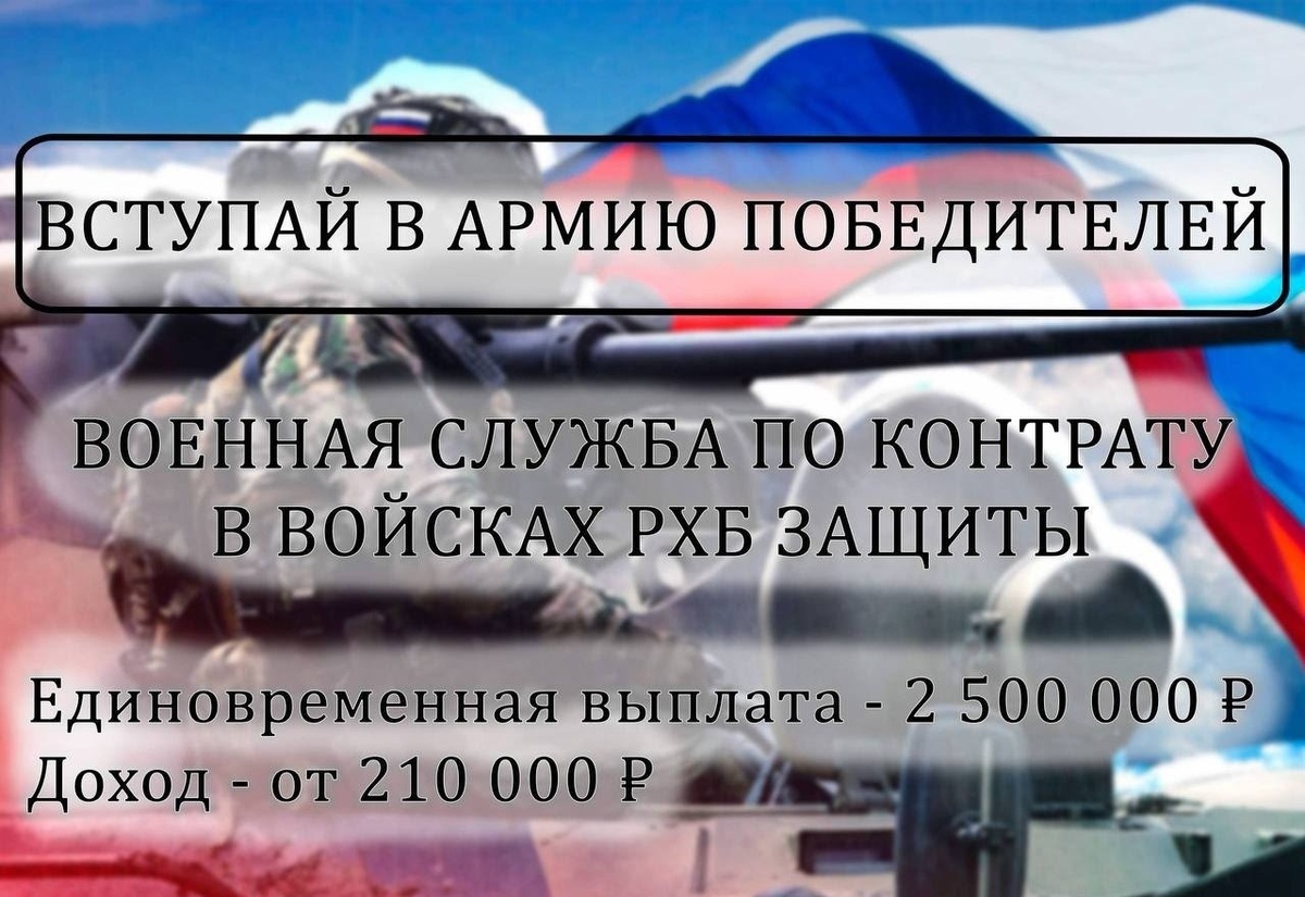 Открыт набор граждан РФ на военную службу по контракту. Доход: от 210 000 ₽ Единовременная выплата: 2 500 000 ₽ Мы предлагаем: - Контракт от 1 года; - Единовременная выплата: 2 500 000 ₽; - Стабильное денежное довольствие; - Бесплатное обучение и подготовка; - Обеспечение жильём и питанием; - Оформление Удостоверения ветерана боевых действий; - Бонусы за участие в боевых задачах до 1000000 ₽; - Списание долгов/кредитов до 10000000₽; - Военная ипотека и помощь с жильем; - Материальные и соц. гарантии семье; - Доплаты на детей и пособия для молодых родителей от 220000₽; - Полная оплата перемещения из любой точки страны. Вакансии: - Начальник склада; - Инженер по снаряжению б/п; - Оператор БпЛА; - Телефонист; - Водитель. Требования к кандидату: - Возраст от 18 лет; - Дисциплинированность и ответственность; - Опыт службы необязателе Показать полностью... ____ 📢 Подписывайся 👉 Канал | Аварийка LIVE | ДТП и ЧП России 💬 Общайся 👉 Чат | Обсуждения и новости ДТП
