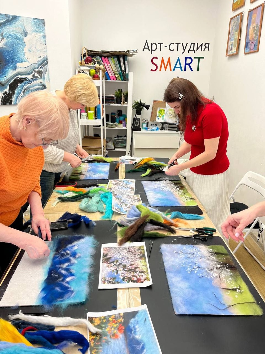 Такую красоту из шерсти можете создать и вы! Творить легко и просто в хорошей компании, за душевными разговорами и в дружеской обстановке! Всё это есть в нашей студии! Занятие "Шерстяная акварель", преподаватель Арина Лаврентьева. Ждём всех желающих 😊❤️
