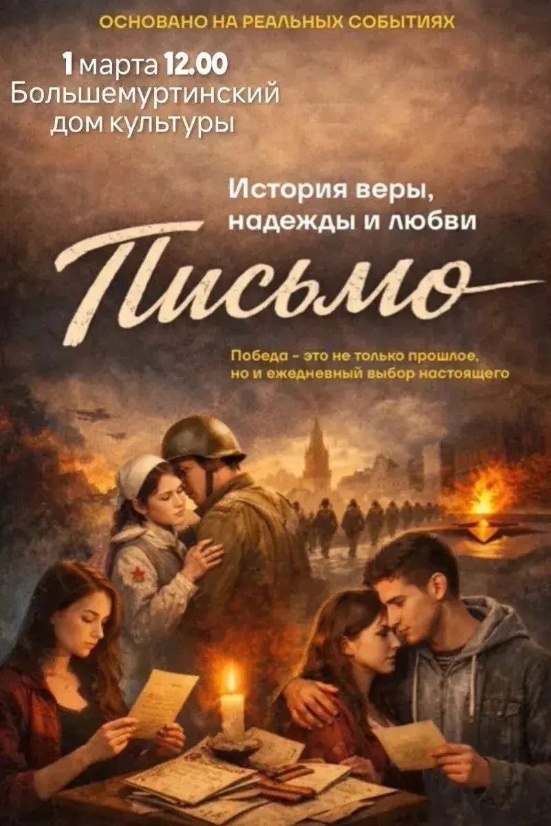 Уже в это восересенье, 1 марта в 12:00 в Большемуртинском Доме культуры состоится постановка "Письмо", основанная на реальных событиях
