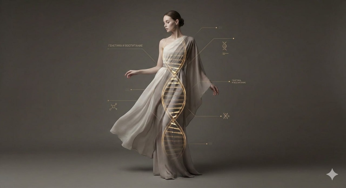 Вчера копался в исследованиях по генетике (люблю, когда сложные жизненные абстракции раскладываются на понятные метрики). Собрал сухой остаток того, как на самом деле работает наша биологическая архитектура и почему мы так часто переоцениваем воспитание. От кого и сколько мы получаем Весь наш геном — это массив данных из 6 миллиардов химических «букв», в которых зашифровано около 20 000 генов. С родителями всё честно: ровно 50% базы (по 3 миллиарда букв) вы получаете от мамы, и 50% — от папы. А вот с бабушками и дедушками работает чистый рандом. При формировании клеток гены предков тасуются случайным образом. Поэтому вы легко можете унаследовать огромный пакет генетических багов или фич от дедушки и почти ничего — от бабушки. Таланты, IQ и эквалайзер Никакого «гена гениальности» или «гена спорта» не существует. Сложный признак — это не тумблер «вкл/выкл». Представьте пульт звукорежиссера с тысячами ползунков: каждый отдельный ген вносит крошечный вклад в итоговый результат. Цифр